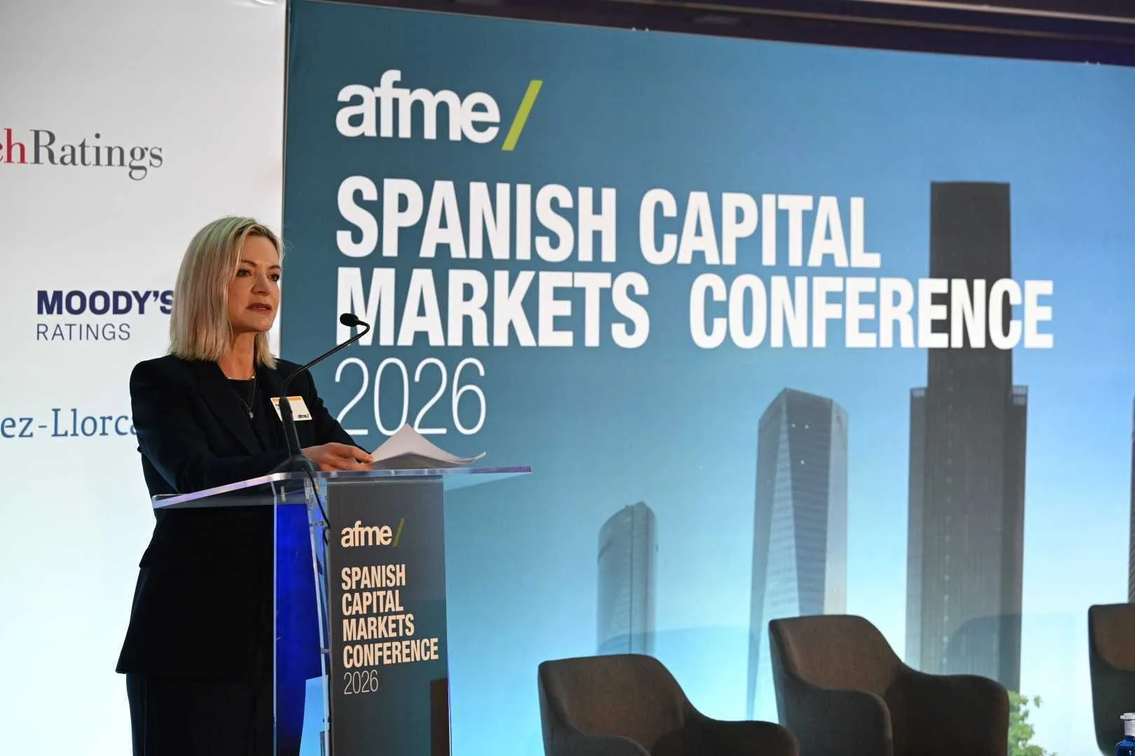 April Day, directora de Mercados de Capitales de la Asociación de Mercados Financieros en Europa (AFME), en la inauguración de la Spanish Conference